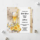A beautiful watercolor glass of sparkling wine has white and yellow daisy and rose flowers around its stem together with sliced lemons. The glass of bubbly is set aginst a faded marble background that has a white inlay bordered by vertical golden bands. Black text templates rest on the inlay for your custom wording. The back has the same design with additional templates for extra information you may want your guests and family to know. If not required, delete the wording to leave the line blank. This stylish, modern, elegant and trendy design is ideal for any bridal shower; birthday or quinceanera celebration. Spoil the bride to be with this bespoke and timeless square invitation