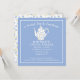 A sweet and modern invitation, with an elegant tea pot with a soft blue background.