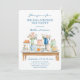 This elegant bridal shower tea party invitation features soft blue typography and charming watercolor illustrations of teapots, cakes, macarons, florals, and vintage teacups. Perfect for an afternoon tea or high tea bridal shower, this classic and feminine design sets the tone for a refined celebration. Ideal for garden parties, tea rooms, and traditional bridal showers, with space to customize all event details.