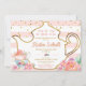The invitation features tea pot outline with teacups and blush flowers. It's perfect for a bridal shower tea party.