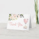 This thank you card features a rose gold wine glass with Blush Florals. It's perfect for a Bridal Shower Party Weekend in Vineyard or Winery.