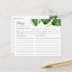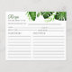 Bridal Shower Tropical Jungle Leaves Recipe Card