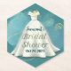 Bridal Shower Wedding Gown Deep Teal Gold Glitter Paper Coaster