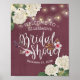 Bridal Shower Welcome Sign Poster Templates - Elegant White lovely Watercolor Hydrangea Flowers and String Lights on Burgundy Red Background.