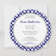 A custom birthday, bridal or baby shower invitation template with white polka-dots big and small on a dark blue background on a round invitation. Customise It to change fonts, background colours and more, even save your design for later.