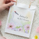 This bridal shower favor bag features a hand-painted watercolor of a graceful whooping crane surrounded by soft pink, violet, and peach anemones. Symbolizing devotion and new beginnings, the romantic botanical artwork adds a warm and meaningful touch to the celebration.