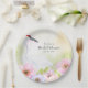 This personalised plate features a hand-painted watercolor of a graceful whooping crane surrounded by soft pink, violet, and peach anemones, creating a romantic, nature-inspired design ideal for a bridal shower or wedding celebration. The crane symbolises devotion and harmony, while the delicate florals reflect beauty and new beginnings. Customised with the bride’s name, this plate adds a refined and meaningful touch to the celebration table.
