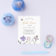 A white background. Decorated with bees and painted wildflowers in violet and pink. Personalize and add a name and party details.
