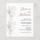 On front: White background, cream, beige coloured wildflowers. Personalise and add a name and party details. Text: Love is in Bloom.