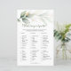 This design features watercolor illustration of green and gold foliage with golden effect confetti. Greenery Bridal Shower Games - Double sided card - Two games in One!  Bridal What's in your Purse Game in the front of card and Wedding Scramble game on the reverse.  The answer key for Wedding Scramble game: Bride, Groom, Wedding Cake, Honeymoon, True Love, White Dress, Lace, Happiness, Unity Candle, Bridesmaid, Groomsmen, Officiant, Chapel, Marriage Vows, Ring Bearer.