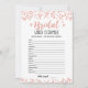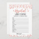 Bridal word scramble with Answers Game Card
