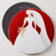 BRIDE WEARING WEDDING GOWN AND VEIL AND HOLDING FLOWER BOUQUET ON A RED BACKGROUND