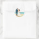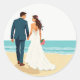 Includes 20 small stickers on one sheet. Adorable illustration of a bride and groom walking hand in hand on the beach, perfect for wedding celebrations and romantic gestures.