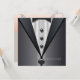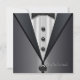 Bride and groom elegant black tuxedo with white shirt and black bow tie invitation on the front and ivory wedding strapless dress with diamond necklace on the back. This is a versatile party or event invitation template for any party or special occasion.