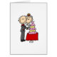 Cute stick figure newlyweds pose by their enormous wedding cake.
