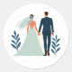 Includes 20 small stickers on one sheet. Elegant and charming sticker featuring a bride and groom holding hands, surrounded by simple leaf designs, perfect for wedding decor.