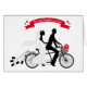 bride and groom on tandem bicycle, wedding, son and daughter in law