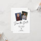 This minimalist save-the-date card features modern black text and a clean white background. Photos of the bride and groom make this card unique and memorable.