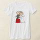 I purchased this shirt and a matching men's one for my grandaughter and her fiance. They were both thrilled and wore them immediately. The quality of the shirts was good and the design was bold and easily seen. I would recommend these shirts to newly engaged couples. The design was colorful, bold, and easily read