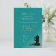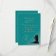 Teal and cream with a lovely bride and groom kissing. There are matching wedding invitations.