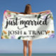 Bride and Groom, Wifey and Hubby, Just Married Beach Towel