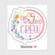 Celebrate your bridal squad in style with this vibrant “Bride Crew” sticker, featuring interlocked gold rings, whimsical florals, and bold, joyful typography. Wrapped in a festive circular frame with stars and blooms, it’s perfect for bachelorette parties, gift bags, or wedding weekend flair. A cheerful tribute to friendship, love, and unforgettable memories.
