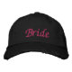 Custom Embroidered District Threads Distressed Chino Twill Baseball Cap Hat in Black with Bride in Pink text typography lettering and digital graphic design by TheFabricSeal print on demand shop at Zazzle.com #ZazzleMade https://www.zazzle.com/store/thefabricseal TheFabricSeal©️Original.
