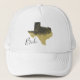A Texas themed trucker hat for the Bride, this design features the state depicted in black and gold glitter like design. This hat is great for a bridal shower, rehearsal dinner, or bacherlotte party. Add your own components to the design to further customise it. Personalise yours today!