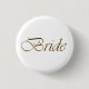 Bride, gold script elegant chic white pin button