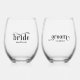 Bride, Groom Elegant Black Typography Stemless Wine Glass