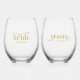 Bride, Groom Elegant Gold Typography Stemless Wine Glass
