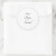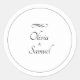 Bride & Groom Names Black White Infinity Scroll, Classic Round Sticker