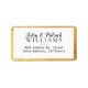 Your home address personalised in a easy way... in a white label with two lines of text aligned by centre, and with bride and groom names and family surname written in stylish font styles, with faux gold border