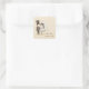 A wedding sticker with bride and groom stick couple on tan background with light swirls. Coordinating pieces available in store.