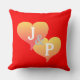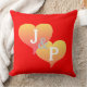 Romantic red with sunset shades of golden yellow to pink hearts reversible Wedding Throw Pillow. Personalise hearts with couple's monogrammed initials. Back of pillow personalise with Bride and Groom's First Names and Wedding Date. Lovely wedding gift for the newlyweds! Original Artwork Design by TamiraZDesigns.