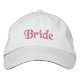 Customisable Bride Embroidered Baseball Cap / Hat from Heard_. Shown is white with pink lettering.