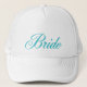 This baseball cap features a blue text design: Bride - great for brides-to-be!
