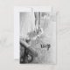 Customise the charming Bride in Cowboy Boots and Sunflowers Country Wedding RSVP Card with your marriage reply date and pair with the matching ranch theme wedding invitations to create a coordinated stationery set. These informal yet elegant custom western wedding r.s.v.p. response cards feature a quaint black and white farm style photograph of a cowgirl bride wearing a white lace wedding dress with leather cowboy boots carrying a bouquet of sunflower blossoms with a rustic wooden barbed wire fence and barn with silo in the background.