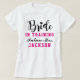 Hit the gym with wedding motivation in this white tee featuring "Bride" in elegant black script with a heart accent, "In Training" in bold hot pink block letters, and "Future Mrs." with a customisable last name below. A fun monogram workout shirt for brides-to-be who are getting in shape for the big day. Makes a great engagement gift, bachelorette party favour, or bridal shower surprise.