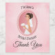 Bridal shower bottle label An illustration of a smiling bride holding a bouquet of flowers in her fancy white wedding dress and wearing a veil. Set inside a pink oval frame