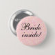 Black print "Bride inside!" on pink pattern. Suitable at engagement party or bachelorette party. Text can be customised.