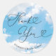 Experience the enchantment of our Bride Is On Cloud 9 Elegant Modern Bridal Shower Thank You Classic Round Sticker, where sophistication meets romance in a cloud-kissed celebration of love. This design is a visual symphony, featuring an elegant font adorned with hearts that gracefully captures the joy and excitement of the bride-to-be. The soft hues and ethereal design create an ambiance of dreamy romance, setting the perfect tone for a bridal shower filled with love and joy. Matching items available.
