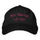 Custom Embroidered Alternative Apparel Basic Adjustable Baseball Cap Hat in Black with Bride Just Married in Pink text typography lettering and digital graphic design by TheFabricSeal print on demand shop at Zazzle.com #ZazzleMade https://www.zazzle.com/store/thefabricseal TheFabricSeal©️Original.