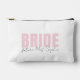 Keep bridal beauty essentials organised with this stylish personalised bride makeup bag, featuring bold blush pink “BRIDE” text and customisable “future Mrs. [Your Name]” in elegant script. This accessory pouch is perfect for storing makeup, toiletries, or emergency wedding-day essentials—ideal for bridal showers, bachelorette gift bags, or honeymoon travel.