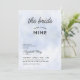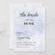 An elegant "The bride is on Cloud 9" bridal shower invitation featuring a blue pastel and watercolor background suggesting a serene blue sky.