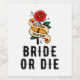 Bride or die, till death do us part bottle labels for a bridal shower. Party supplies with a rose and the quote in black and white. Favours or dinner table goods for a Gothic or vintage tattoo themed party.