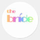 BRIDE RAINBOW TEXT CLASSIC ROUND STICKER