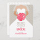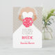 Elegant graphic bride with dark skin wearing a veil holding a posy of stylised red roses floral bridal shower invitations. Edit this pretty invitation with your own words. © Unique design and graphic art by Sarah Trett. www.sarahtrett.com for www.mylittleedenweddings.com