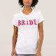 If you are a bride to be or a new bride, you'll love this red text design Bride T-shirt to announce to the world that you're a bride!