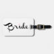 Fully customisable bride script in black with a pink diamond to dot the "i." Cute way for the bride to let the world know the news. Perfect for bachelorette parties and other wedding events.